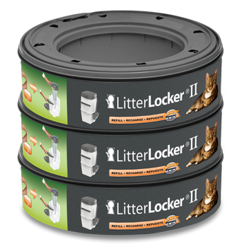 The LitterLocker II Round refills - 3 Pack are designed to fit the LitterLocker II pails only. These refills can last up to 2 months for a single cat household. LitterLocker refills have a multi-layer film that uses Air-Seal technology to seal odours and bacteria within the bag & pail. No more daily trips to the garbage can! PROUDLY MADE IN CANADA. -Fits LitterLocker II Pails only -Lasts up to 2 months -Air-Seal Technology to seal in odours & bacteria -3 pack -Made in Canada